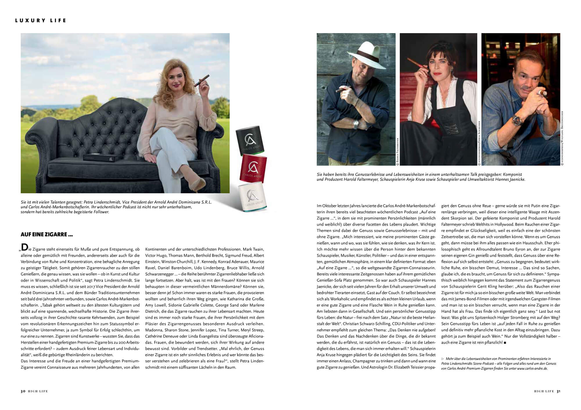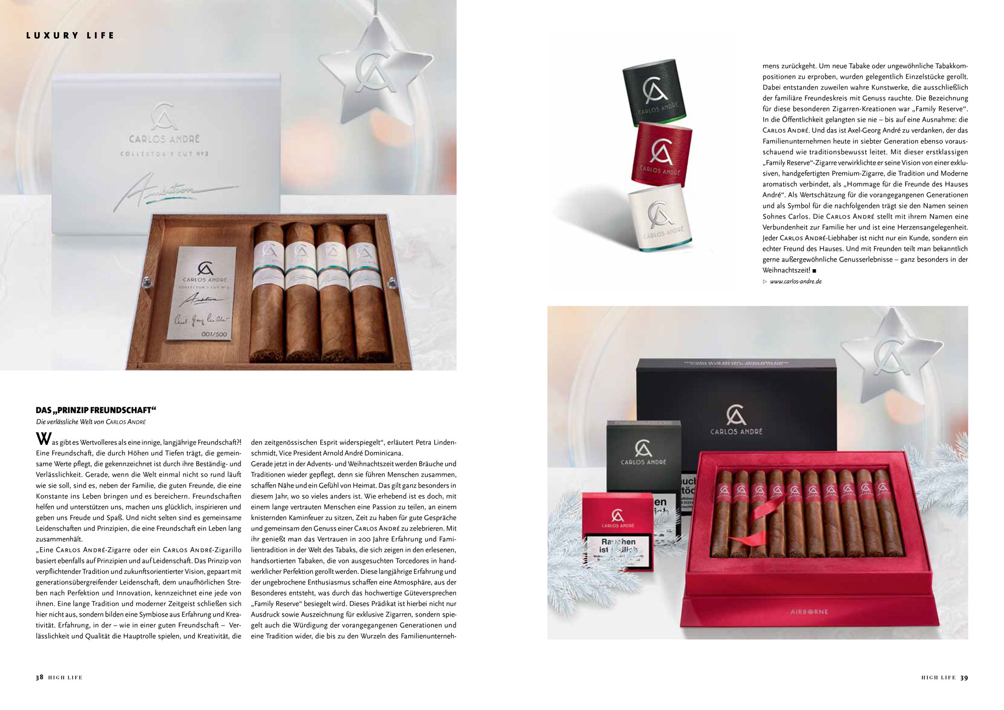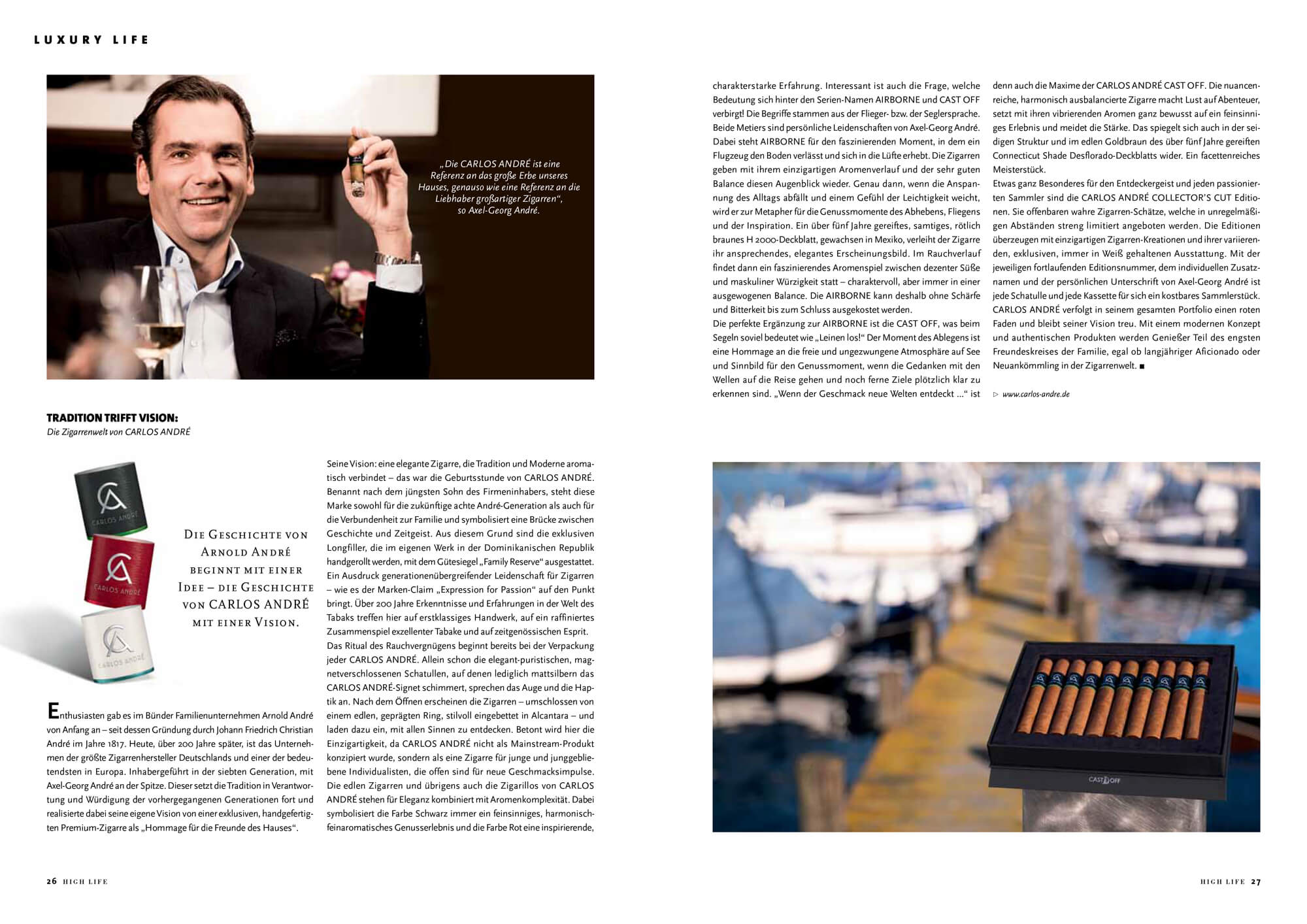 CARLOS ANDRÉ in Magazinen, Zeitschriften und Heften. Eine Auswahl von aktuellen Veröffentlichungen aus der CARLOS ANDRÉ Lifestyle-Welt. Mit informativen und lesenswerten Beiträgen rund um die Premium Zigarrenmarke – zum genussvollen Blättern online.